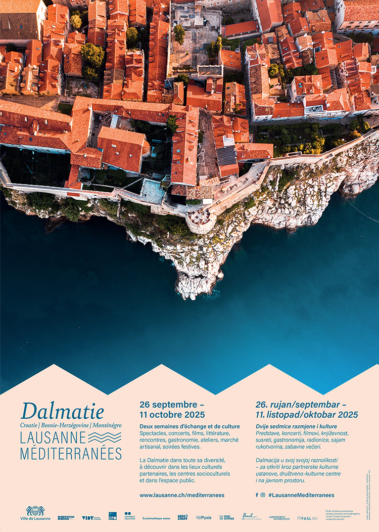 La Dalmatie était à l’honneur de la 6e édition de Lausanne Méditerranées (26 septembre au 11 octobre 2025). Carrefour entre l’Europe centrale, l’Europe de l’Est et la Méditerranée, cette région est riche d’histoire, de traditions et de diversité culturelle. Entre mer et montagnes, dans sa dimension historique, la Dalmatie s’étend le long de la mer Adriatique; elle comprend la Croatie et des parties de la Bosnie-Herzégovine et du Monténégro.